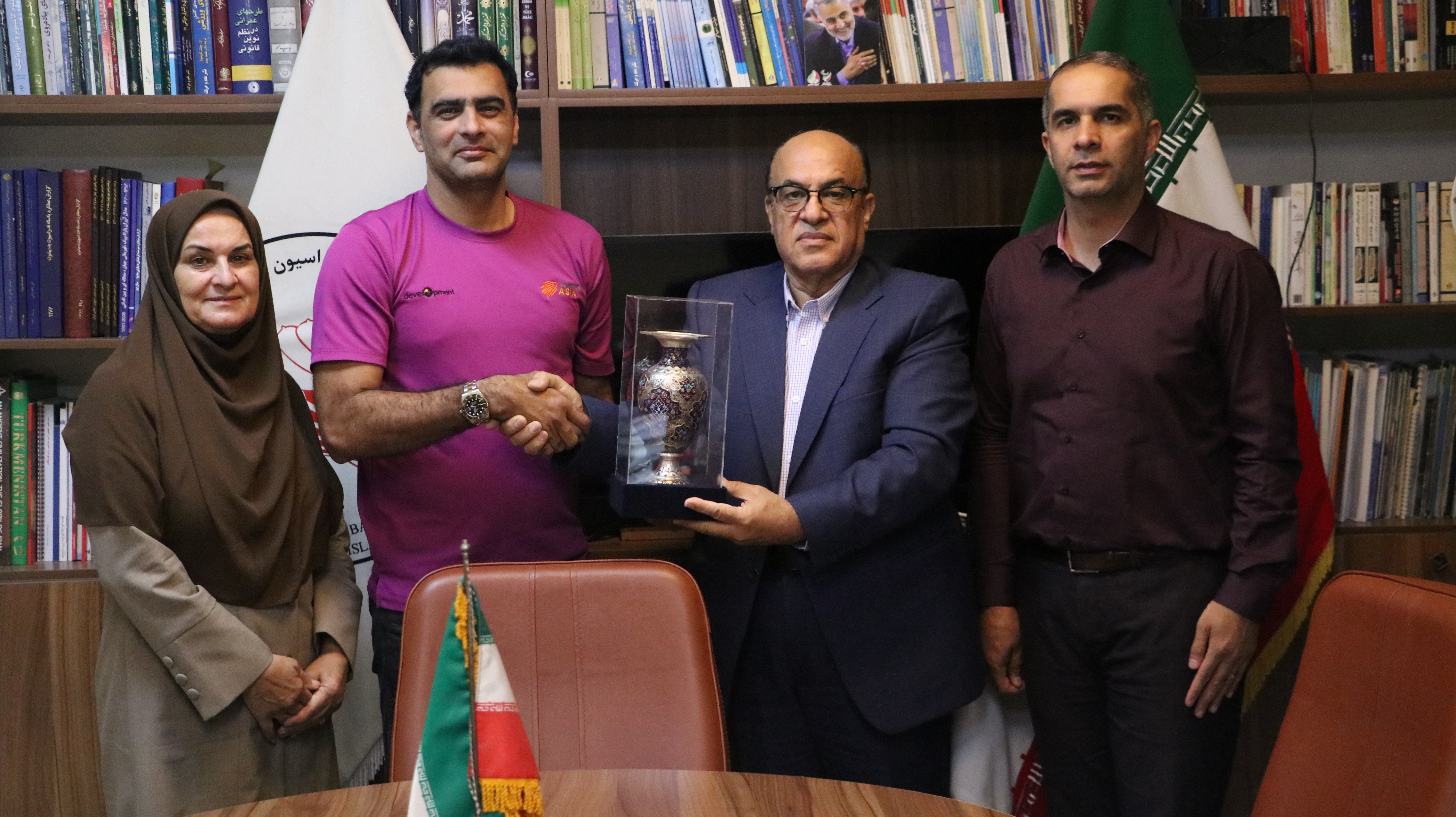 در پایان دکتر پوریا با اهدای یک اثر صنایع دستی به علی واجد از تلاش های ایشان در بدمینتون آسیا و همچنین حضورشان در ایران تقدیر کردند.