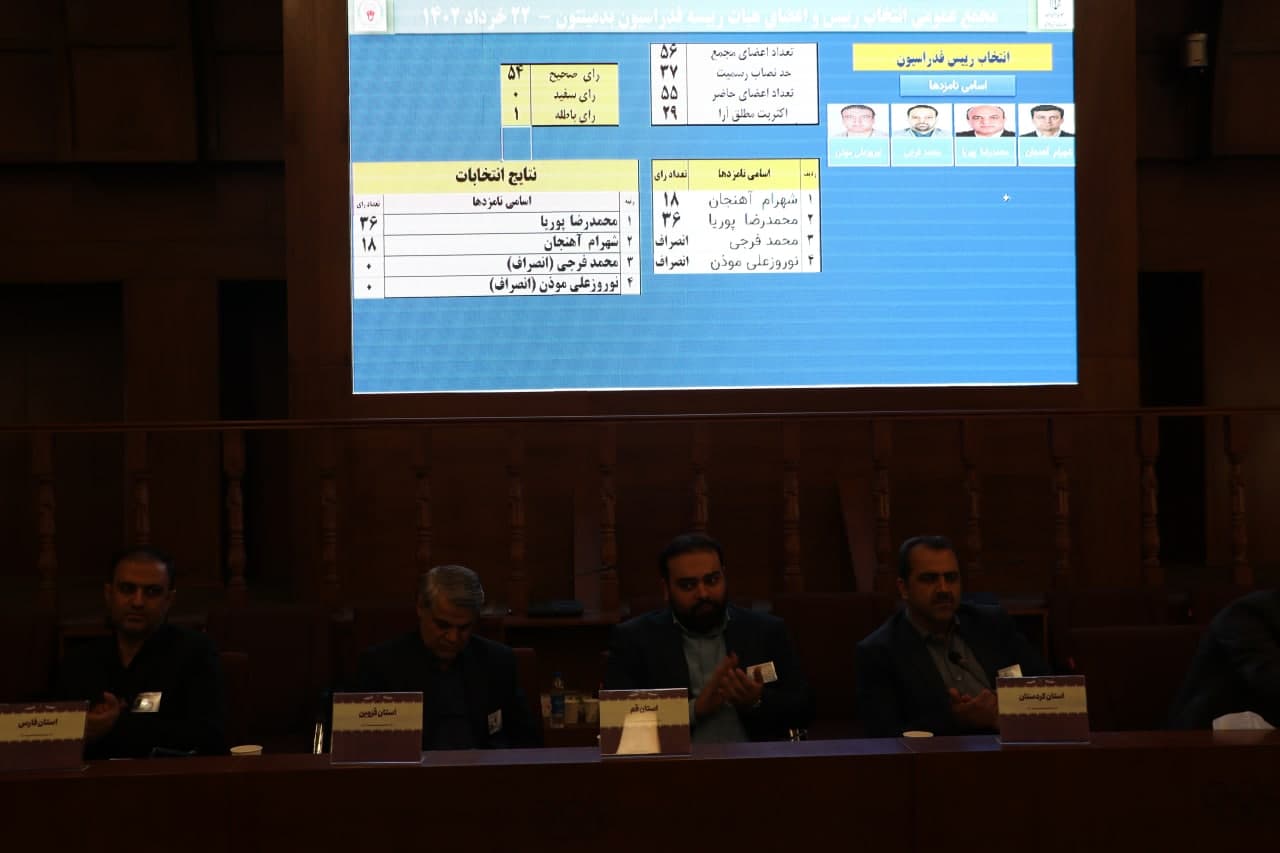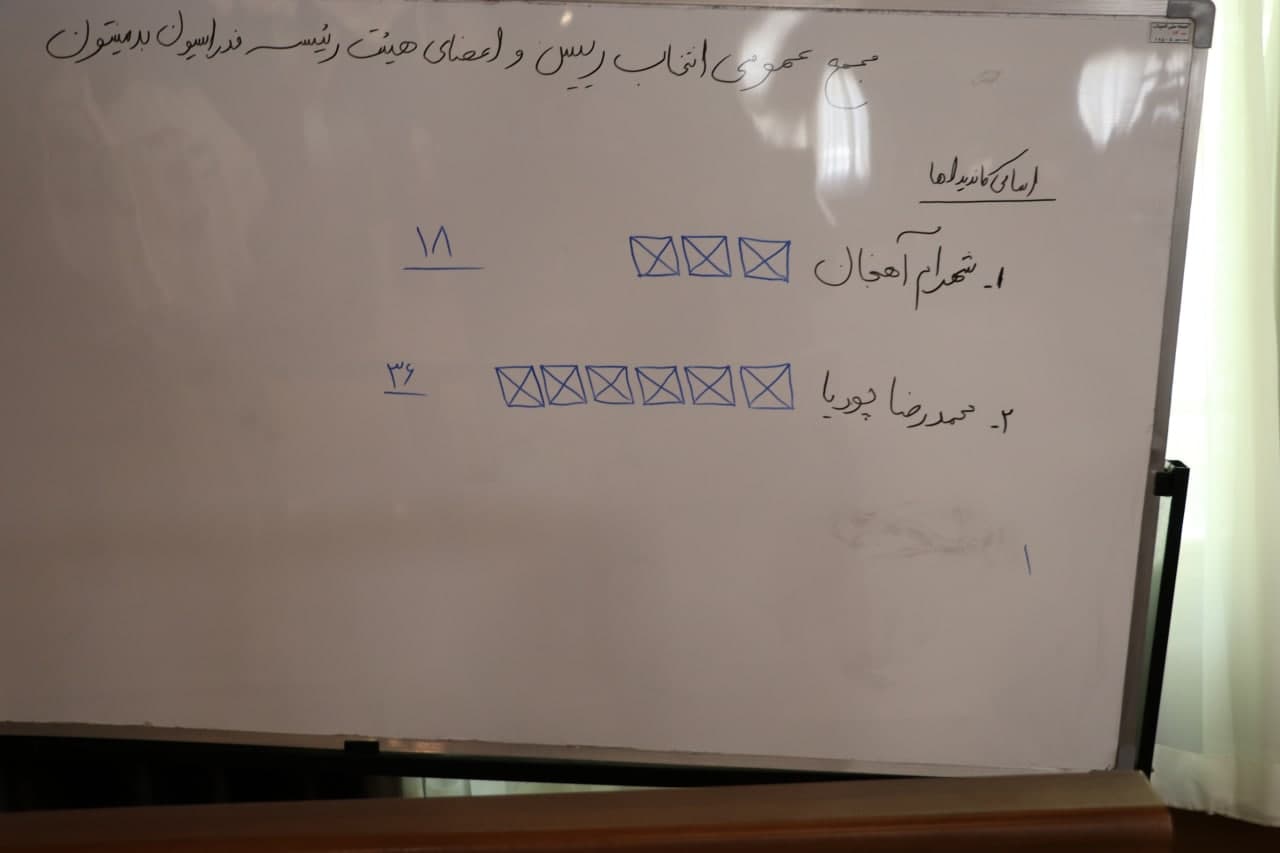 محمدرضا پوریا، محمد فرجی، شهرام آهنجان و نوروز علی موذن از کاندیدای شرکت کننده در این مجمع بودند که نوروز علی موذن و محمد فرجی انصراف دادند و رای گیری میان ۲ کاندید برگزار شد.